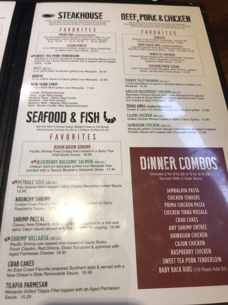 Us farm raised oz. fillet coated in Cajun spices then grilled over mesquite, served with drawn butter.